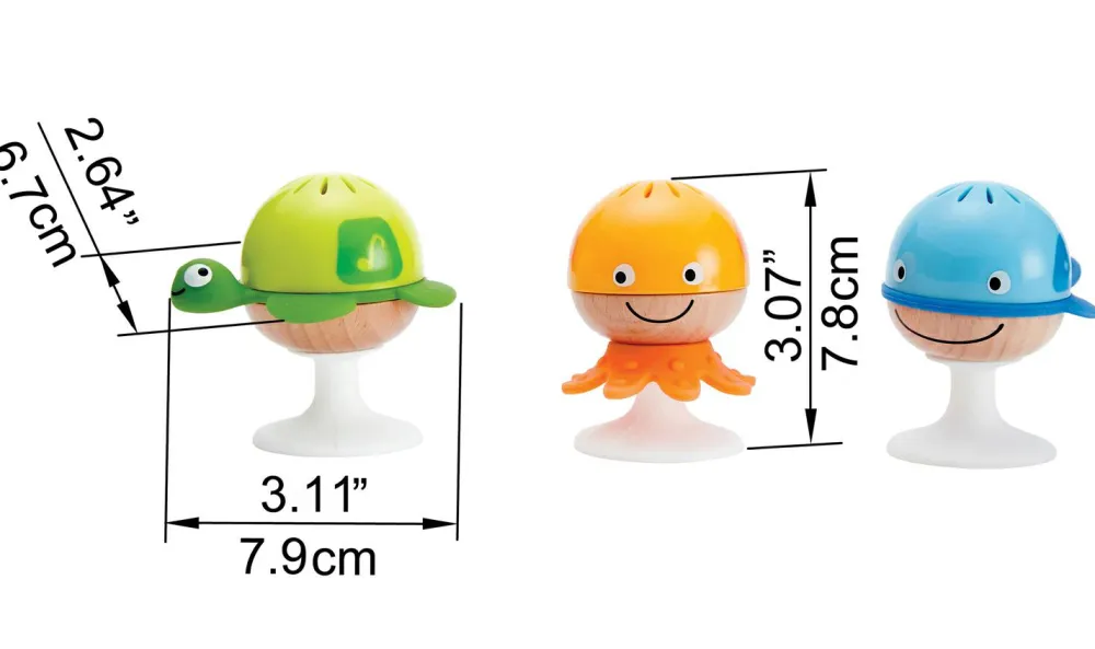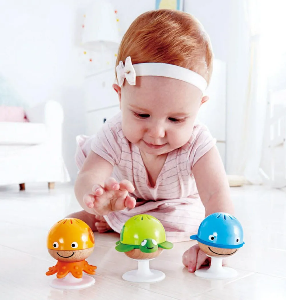 Sæt disse 3 sugekop-havdyr fast på bordet, og dit barn vil juble og daske løs i rendyrket lyksalighed.