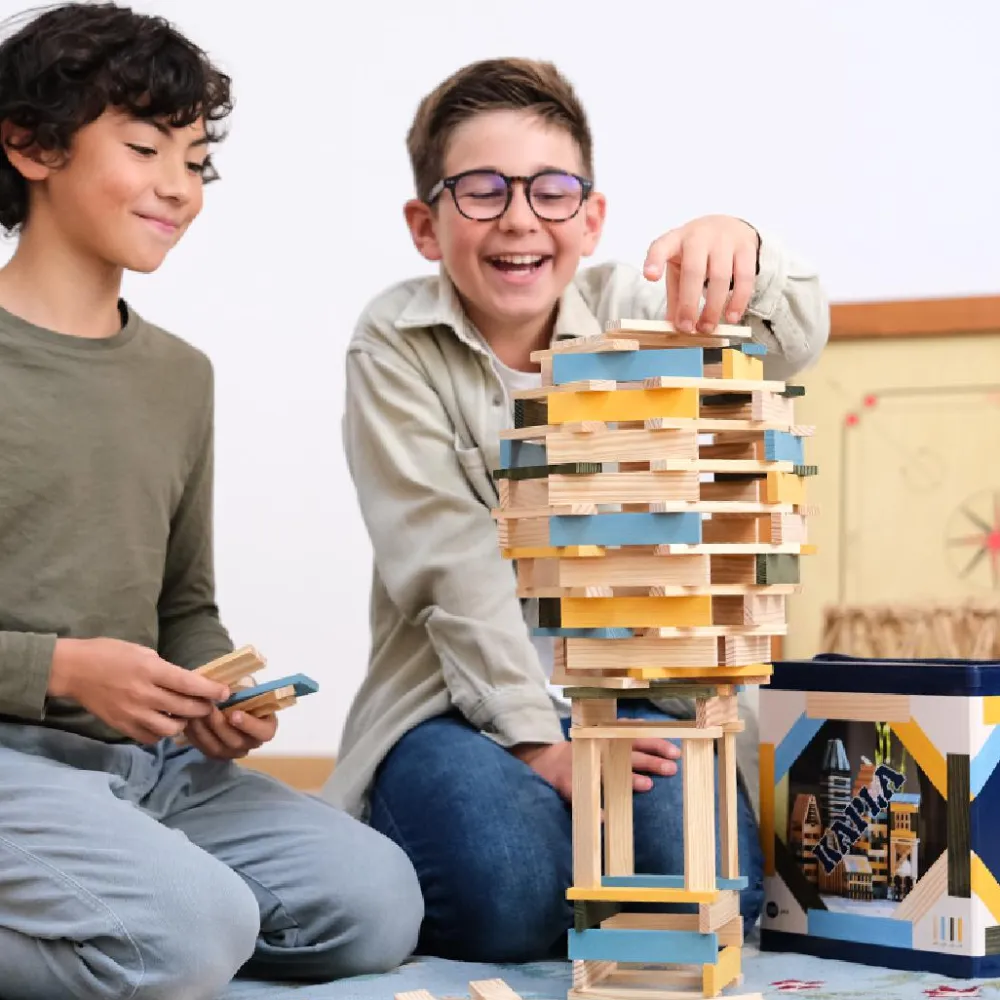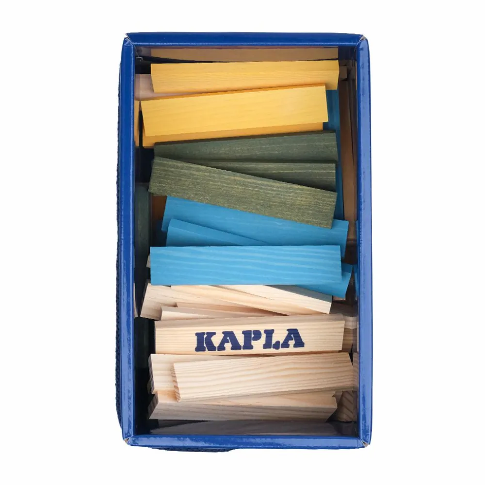 Kapla er byggeklodser af fyrretræ, der gør dem lette at balancere og stable. Desuden er demeget solide og stabile.Brug dem til at bygge høje tårne, snoede trapper med mere efter fri fantasi. Eller sæt dem op i sirlige mønstre som Domino-brikker, hvor et vip af den første klods får hele molevitten til at vælte.