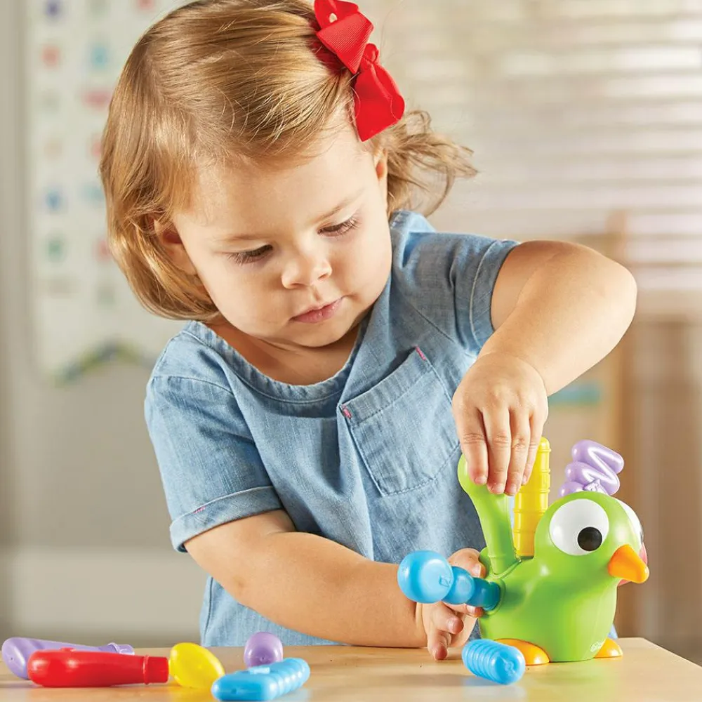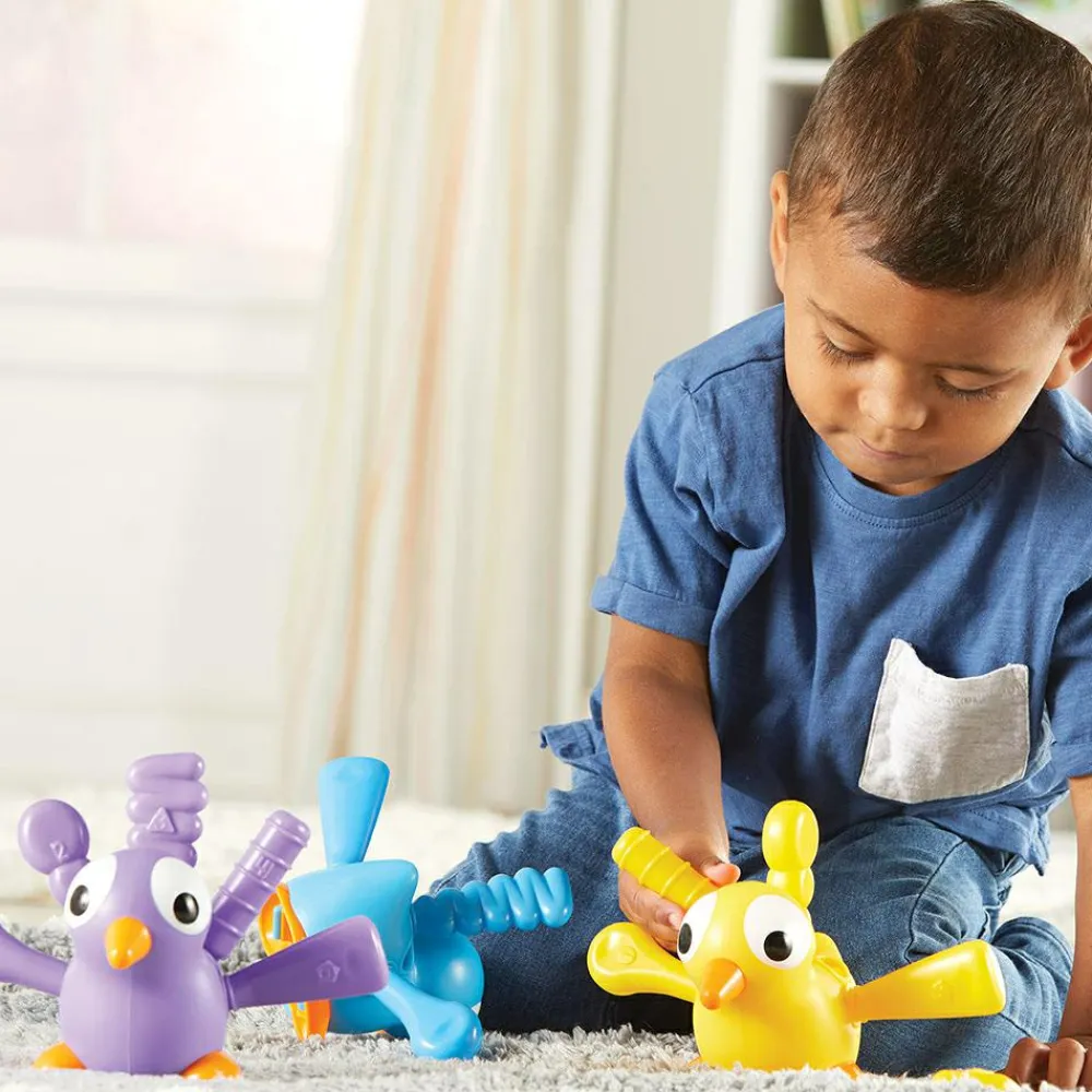 Når de små fugle skal have halefjer, kan dit barn øve sig i at finde en bestemt farve eller facon. Når den er fundet, skal den placeres i den fugl, der trænger til at få en lille fjer på.