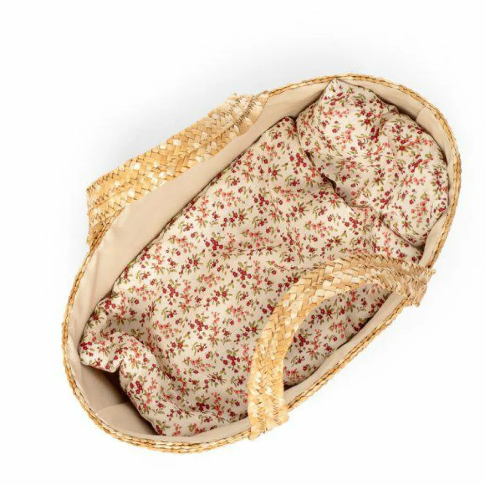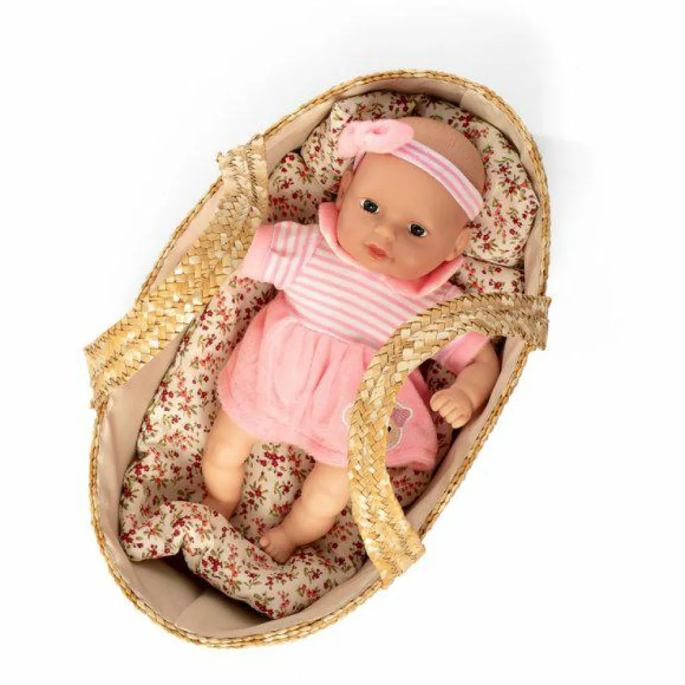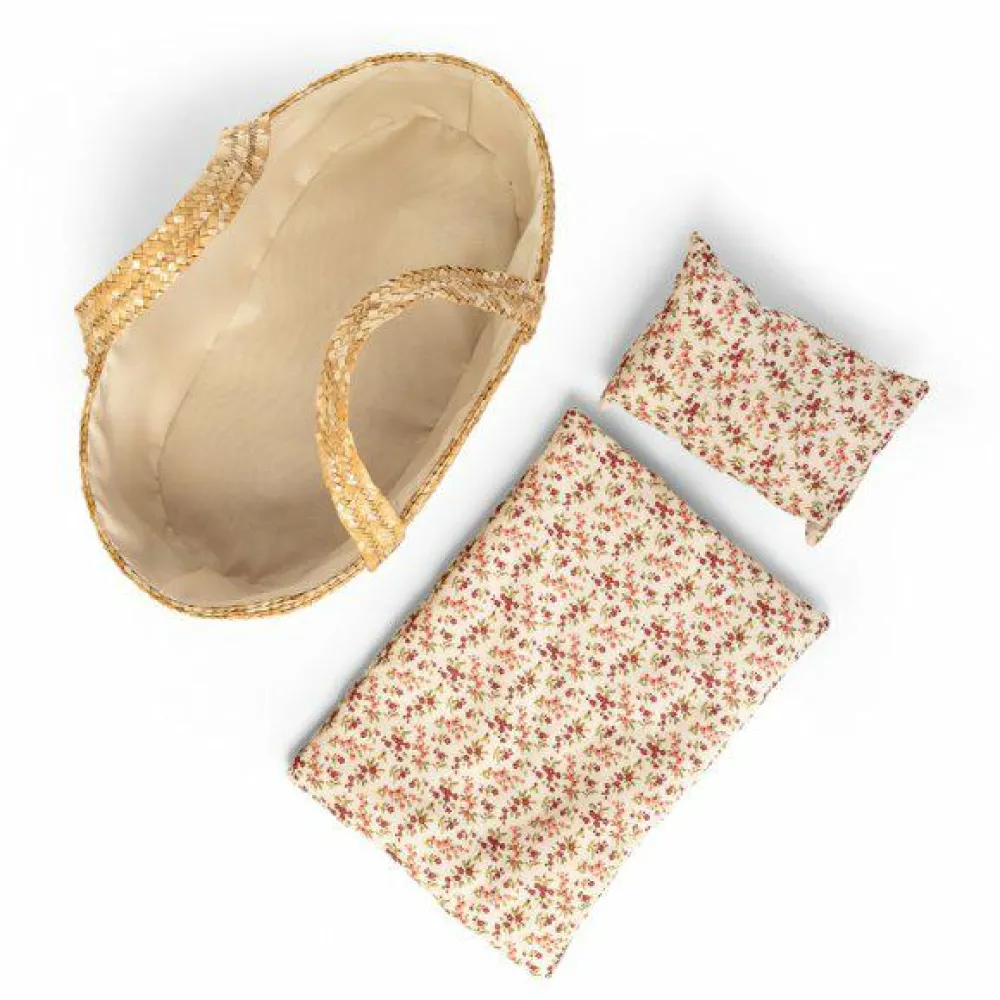 Meget kær moseskurv, hvor dukker op til 30 cm ligger trygt og godt under den bløde dyne med hovedet på den bløde pude.