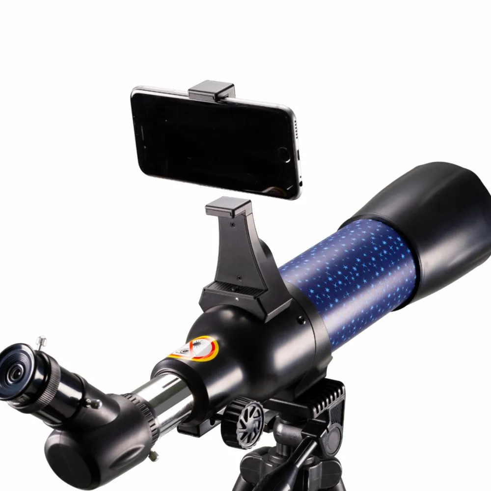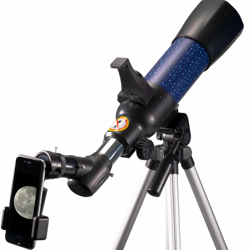 Med smartphone-adapteren kan I tage flotte billeder af det, I ser gennem kikkerten. Desuden får du en AR-app med, så du altid ved, hvad det nu er, stjernebilledet hedder, som du peger teleskopet på.