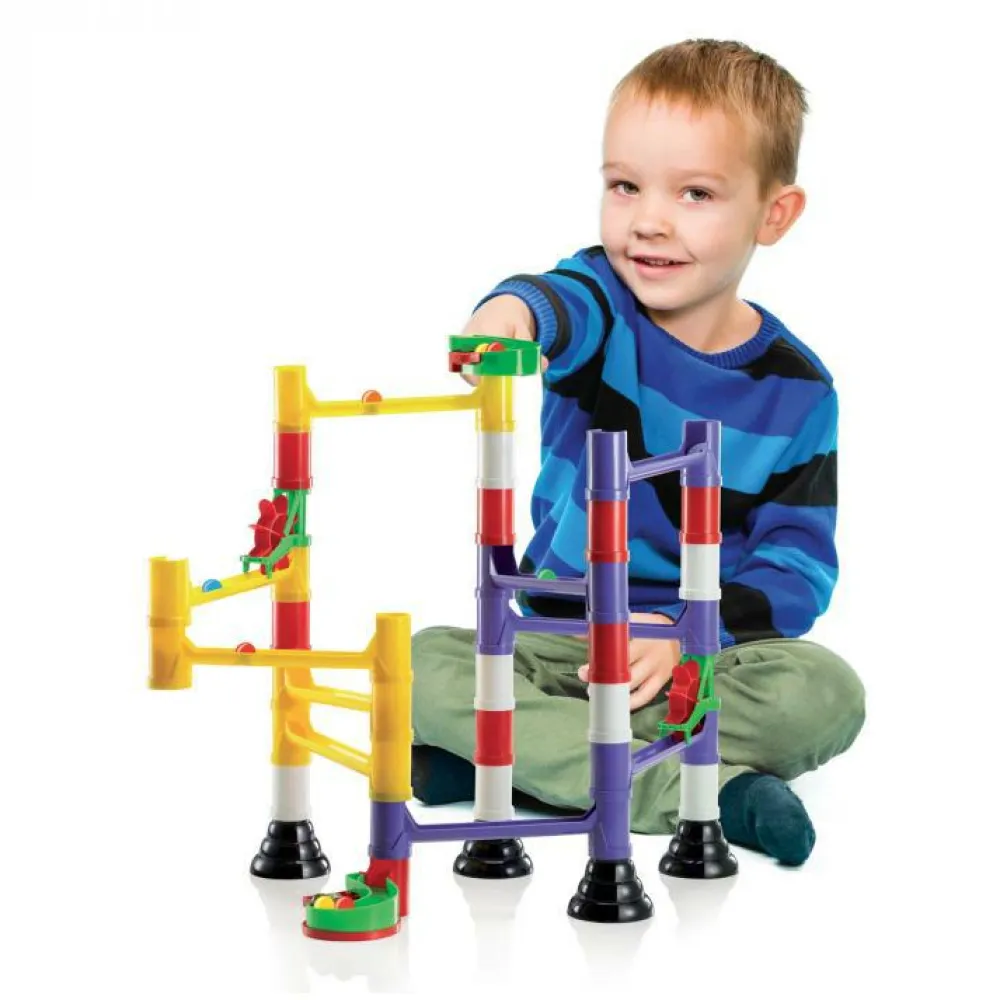 Mindre og begyndervenlig kuglebane, der nemt kan udvides med flere dele og muligheder, når dit barn er klar til det.