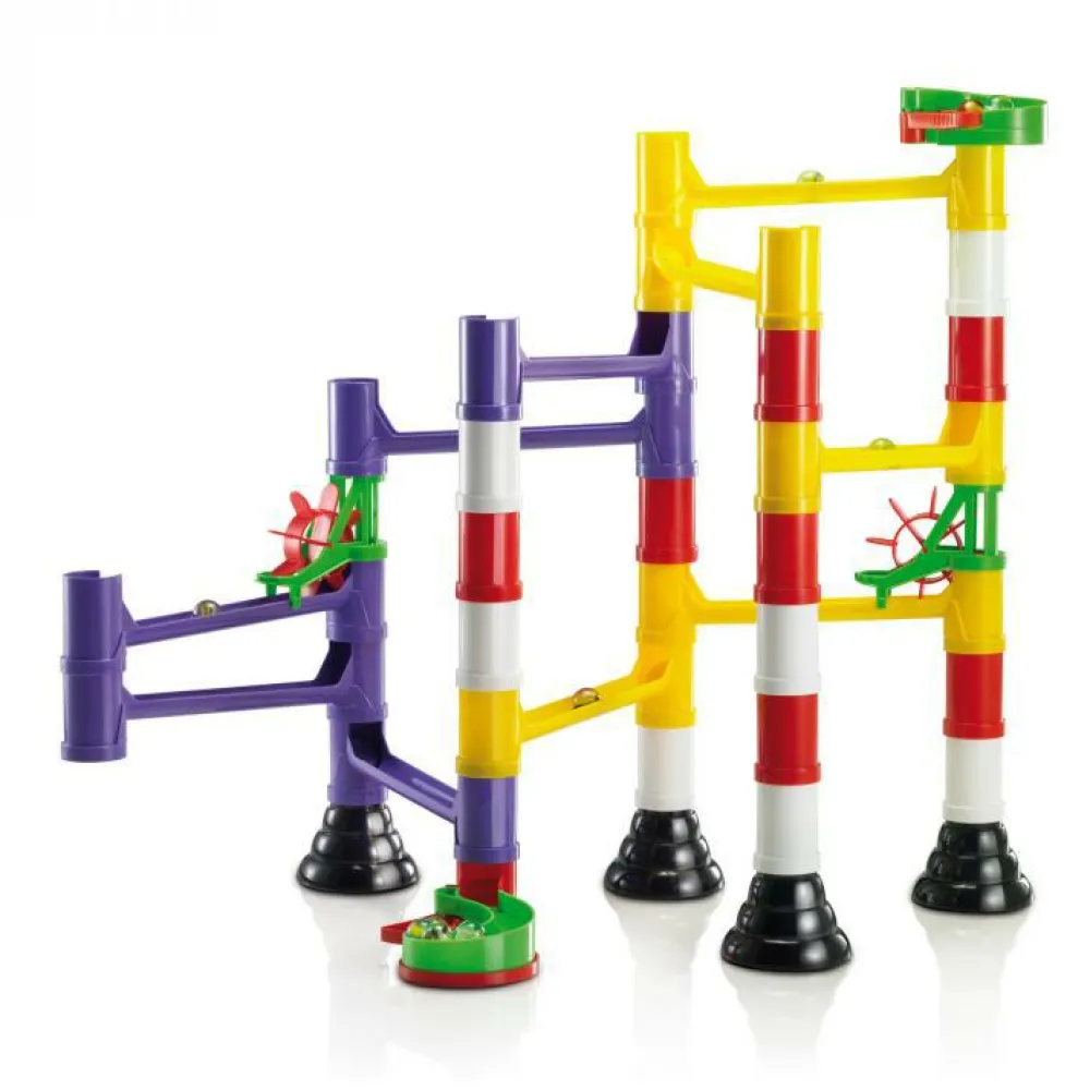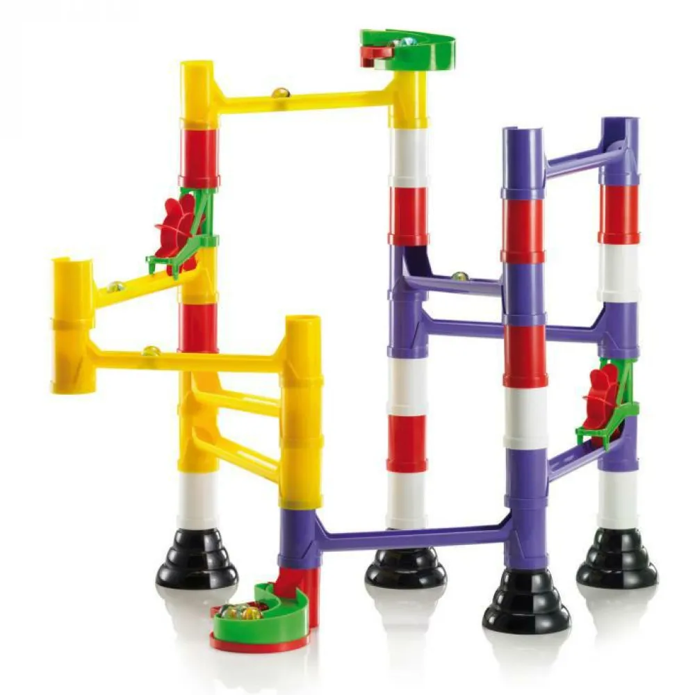 Quercetti fremstilles i Italien og er præcis så italiensk som lasagne. De fuldstændigt geniale kuglebaner er deres abdolut største sællert. Vi har Quercetti kuglebaner i flere typer og til store og små. Men Quercetti er også stiftmosaikker, tandhjulsudfordringer og meget mere. Fællesnævneren er STEM-læring, som kombinerer naturvidenskab med dit barns leg.