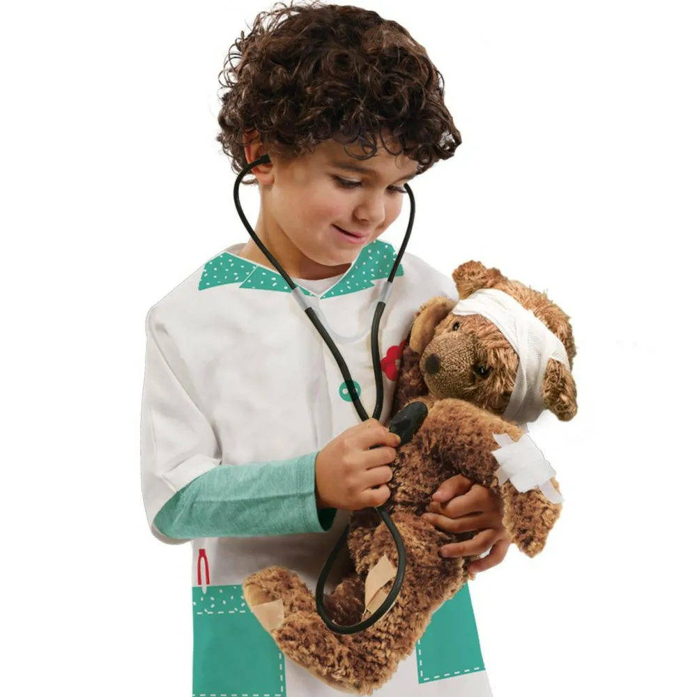 Med et stetoskop kan dit barn lytte til bamses hjerte.