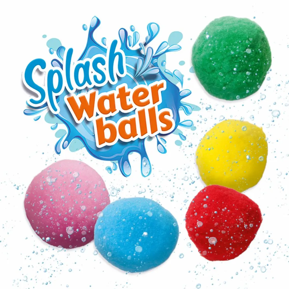 Lad disse fluffy bolde ligge i en stor balje med vand, så de suger sig tunge. Så er de klar til vandkamp.