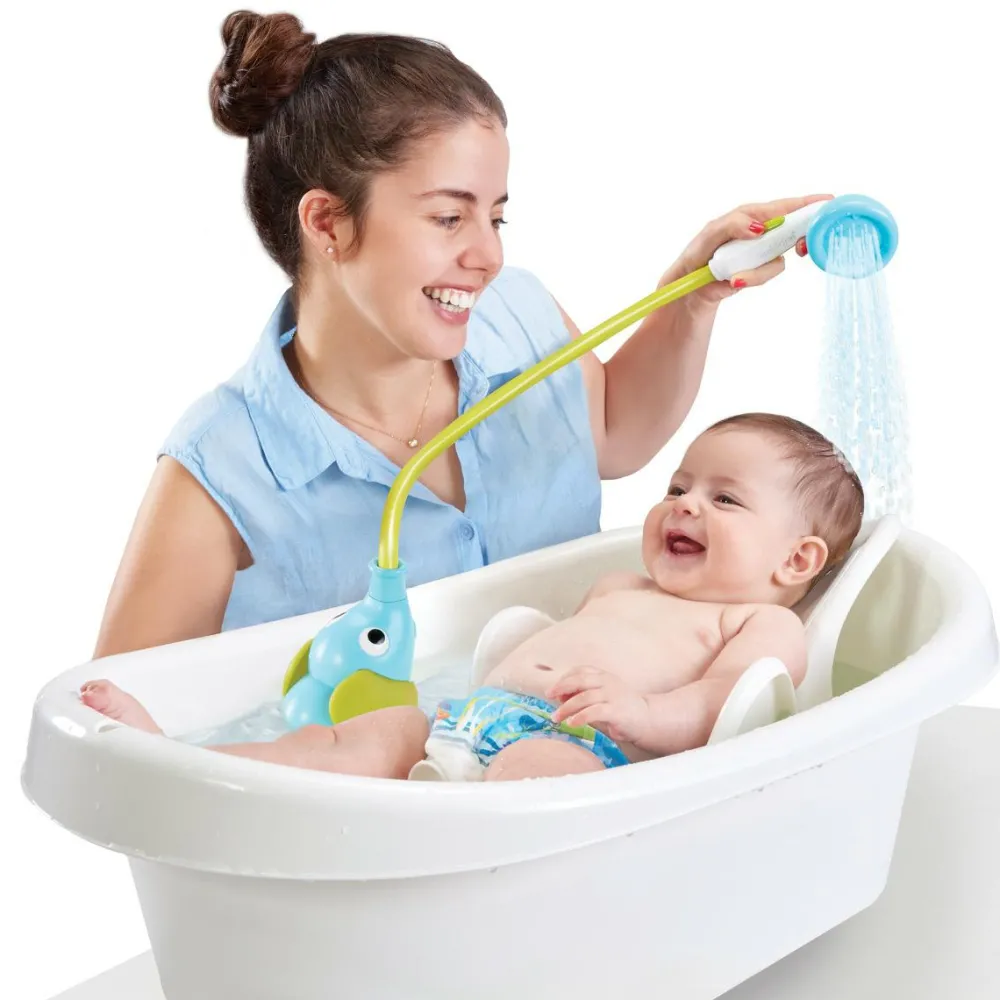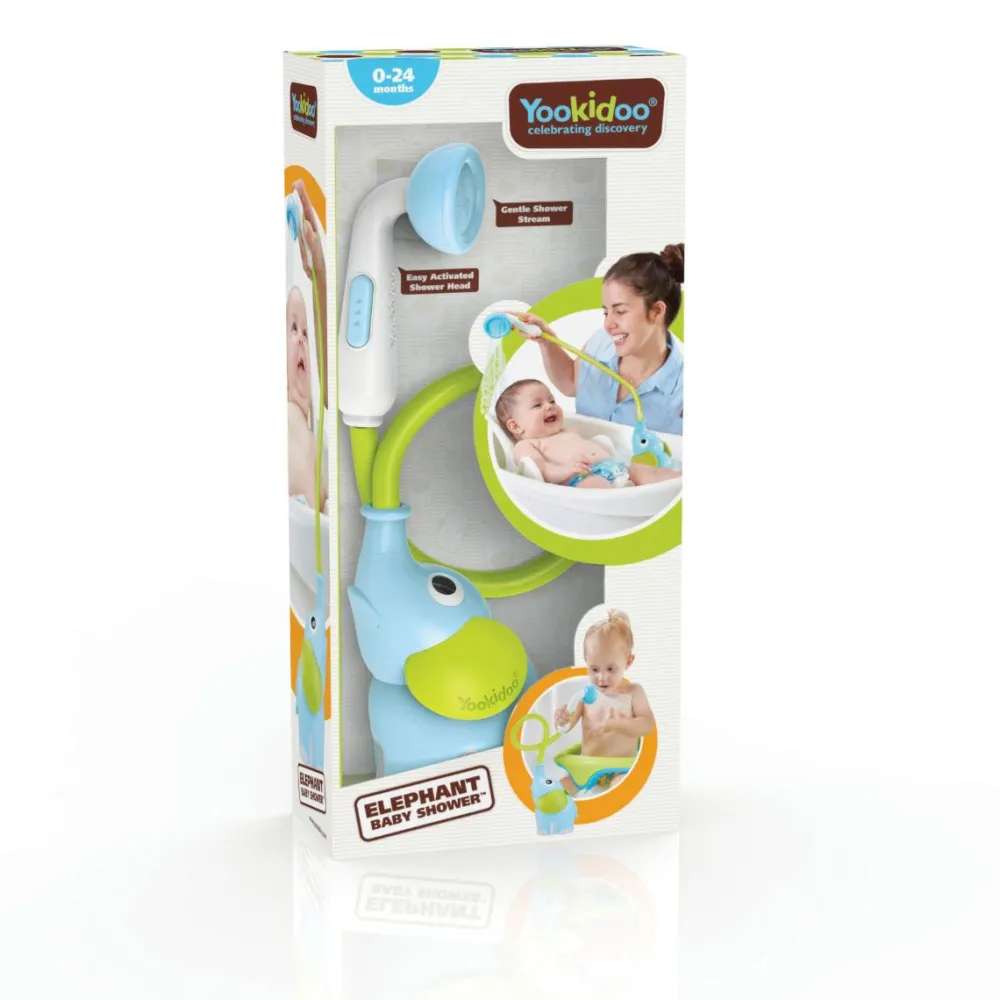 Smart løsning på problemet med at give baby et brusebad eller skylle håret forsigtigt. Denne lille elefant stilles på bunden af badekarret. Så trykker du på knappen, og elefanten suger vand op fra badekarret og bruser det blidt over dit lille barn. Det er da smart, ikke? På den måde er det en mere skånsom oplevelse for dit barn at blive vant til bruserens stråler.