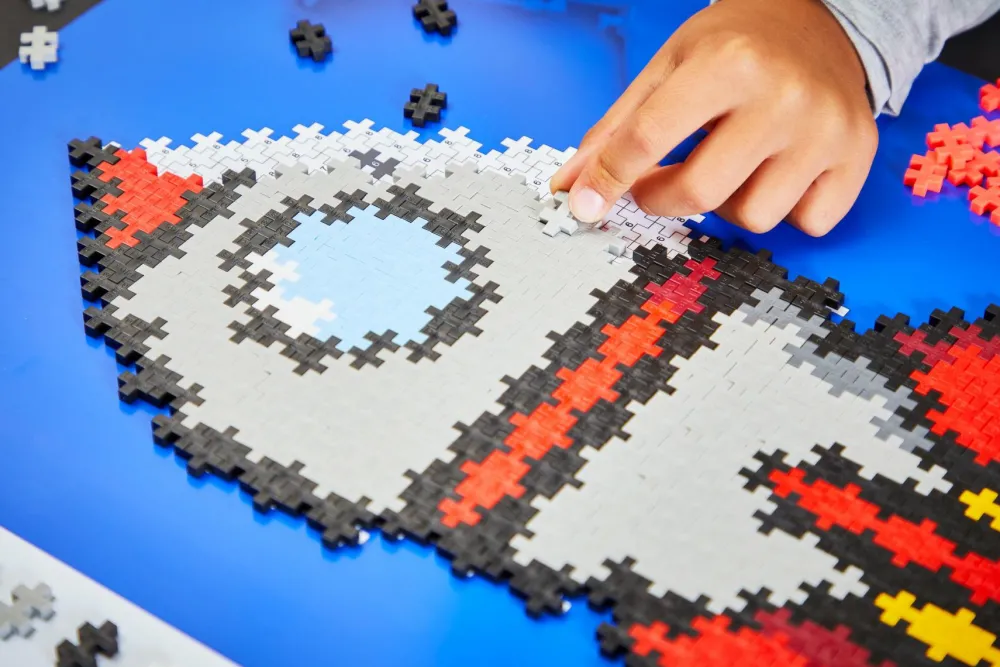 Brikkerne ligner små plusser og kan sættes sammen både i 2D og 3D – og de findes i et væld af farver og i både små (2 x 1,2 x 0,4 cm) og store (5 x 3 x 1 cm). Dejligt konstruktionslegetøj, som begejstrer de fleste børn. Det understøtter dit barns forståelse for geometri og logik at bygge med Plus-Plus. Forslag og nemme vejledninger til Plus-Plus kan du finde på fx YouTube.