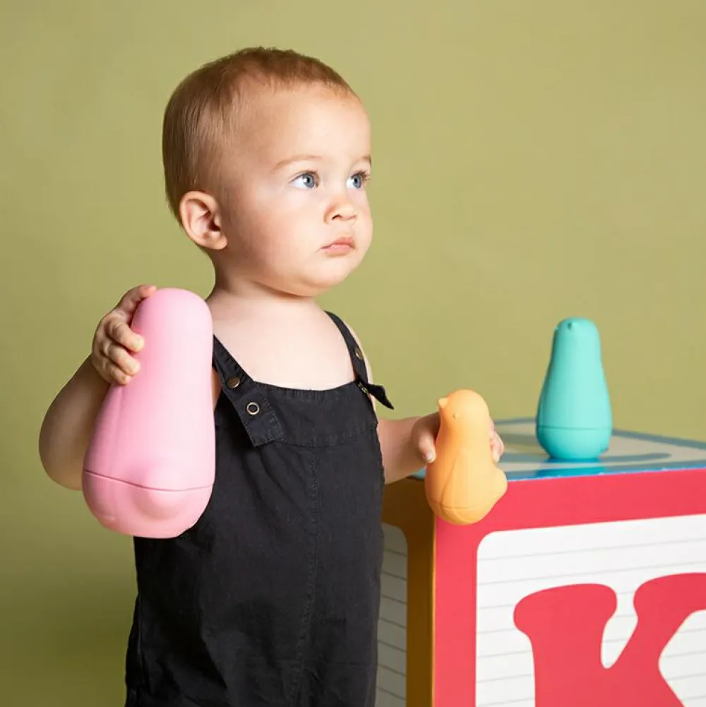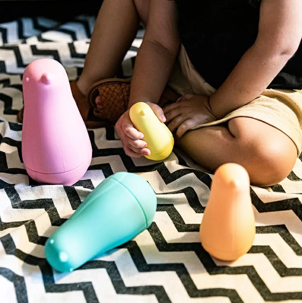 De søde pipfugle er af silikone og dermed lige til at tage med udendørs eller give et dejligt fuglebad i badekarret.