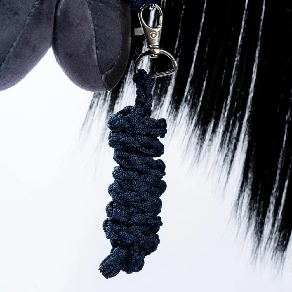 Flot blå grime og grimeskaft med stålpistolhage og træktov, som passer i størrelsen til dit barns byASTRUP kæphest. (Har dit barn en kæphest fra et andet brand, kan du tåle efter og sammenligne med målene på vores byASTRUP kæpheste med åben mule.)