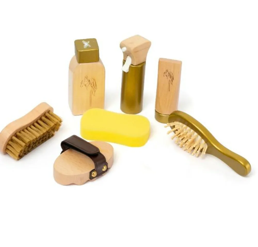 Med dette sæt med vaskebørste, massagebørste og halebørste, svamp, shampoo samt ”Show Shine spray og gelé kan kæphesten rigtig smukseres og blive nusset om.