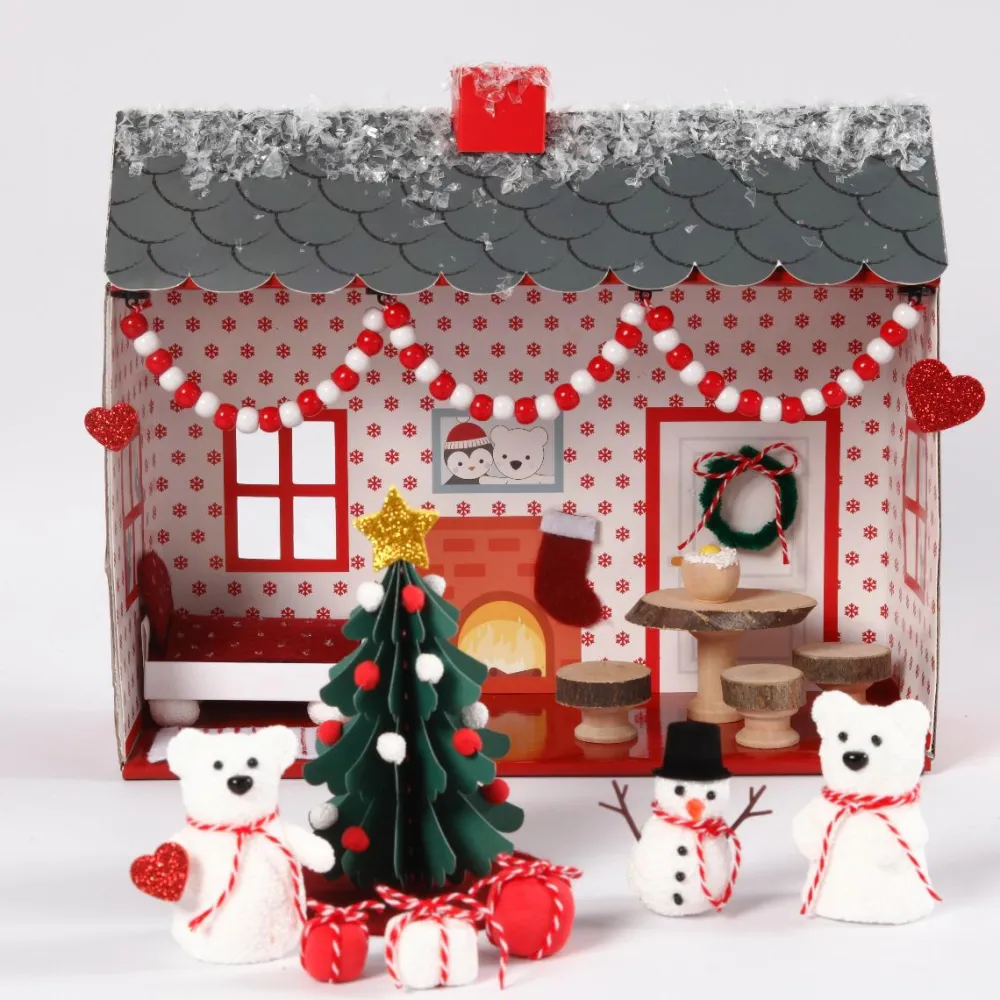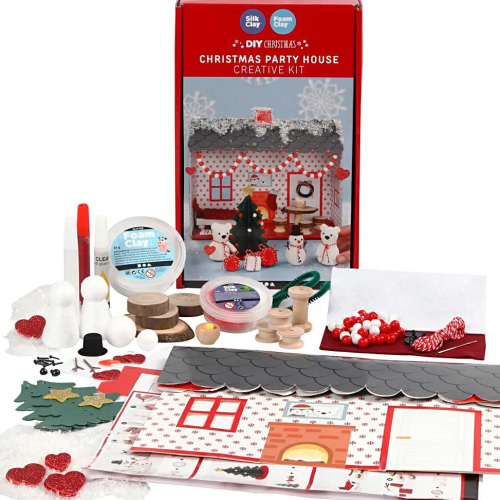 Megafedt kreasæt. Lav dit eget julehus, med møbler, dukker og snemænd. Fantastisk hyggelig juleaktivitet til rolige stunder. I kan sagtens være flere om det.