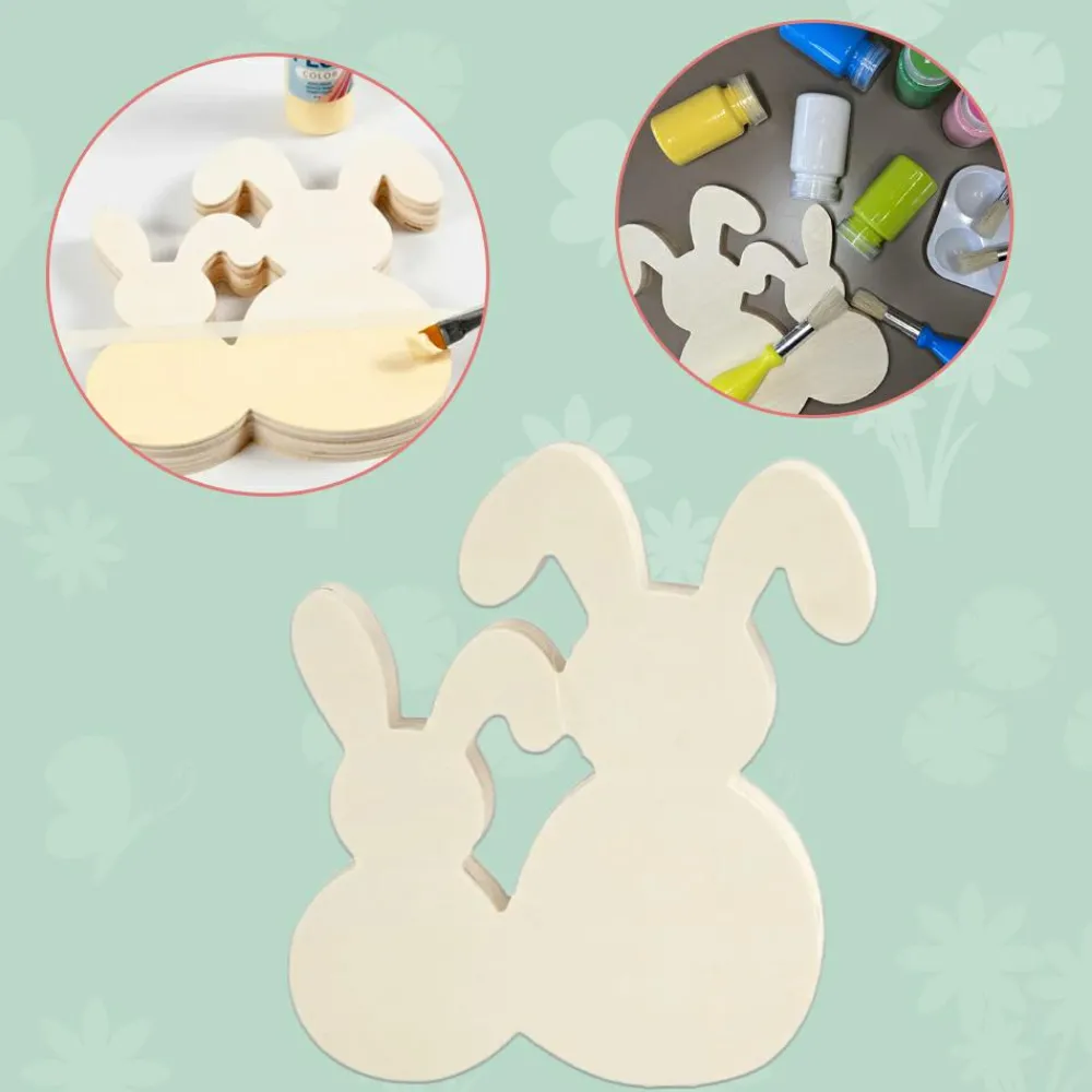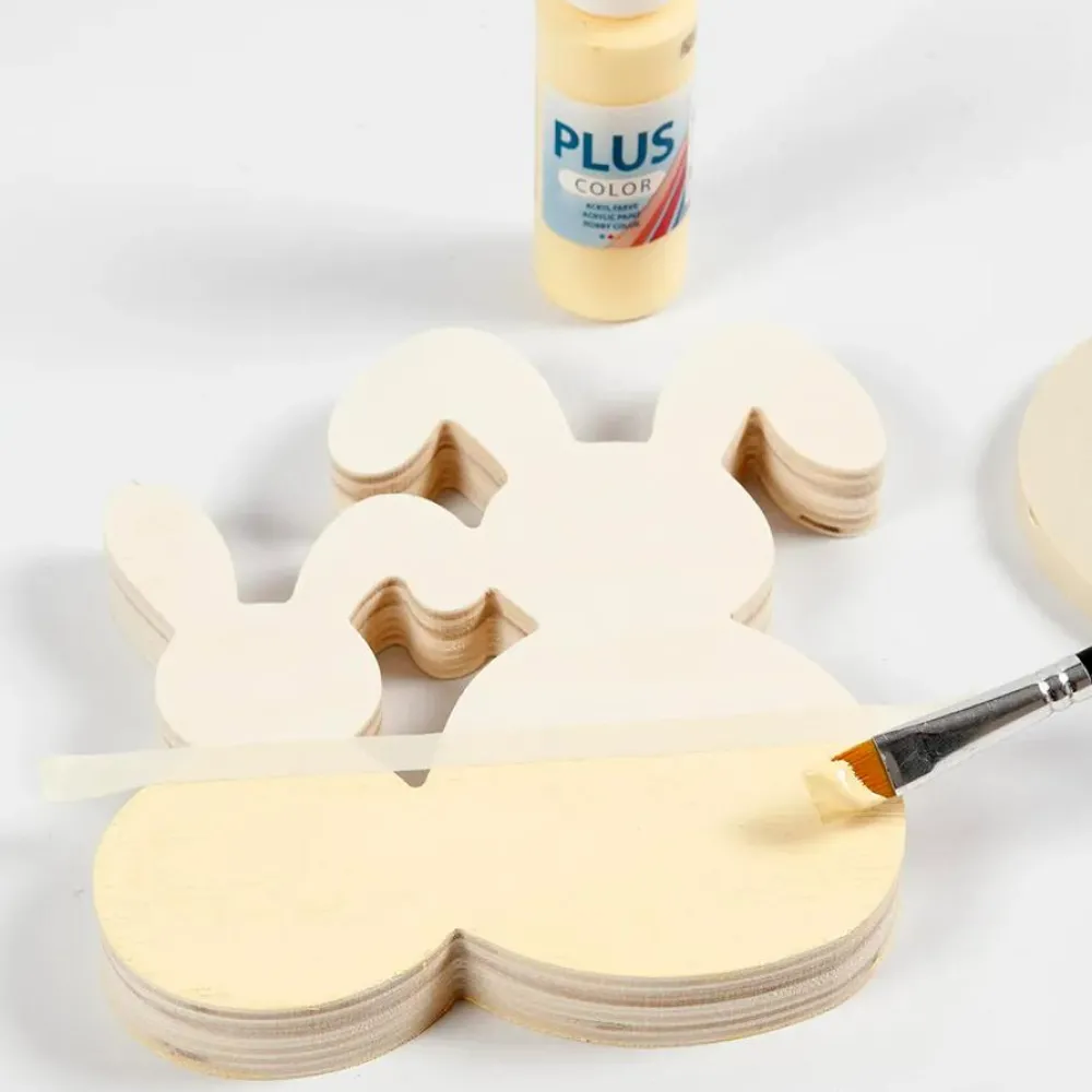 Figur med to harer af træ, som er søde at have stående i vindueskarmen eller som del af en påskedekoration.