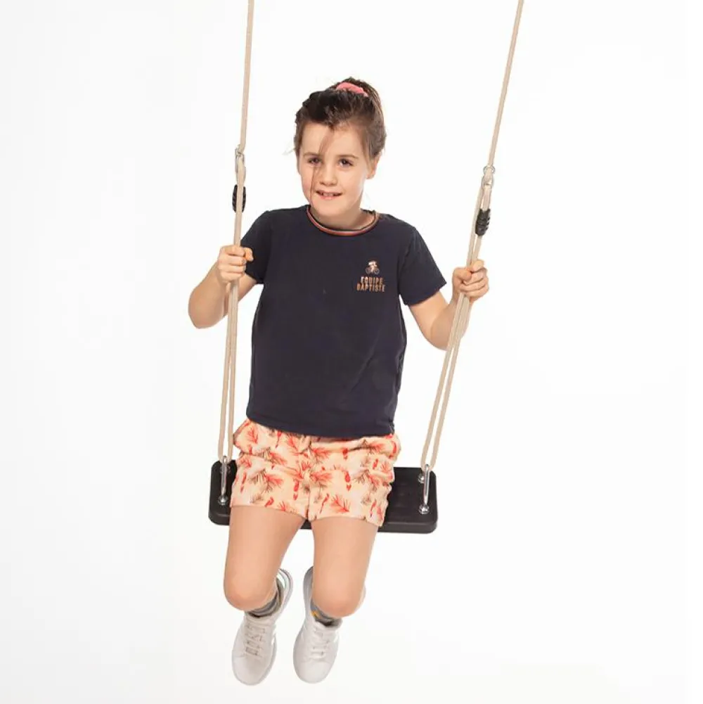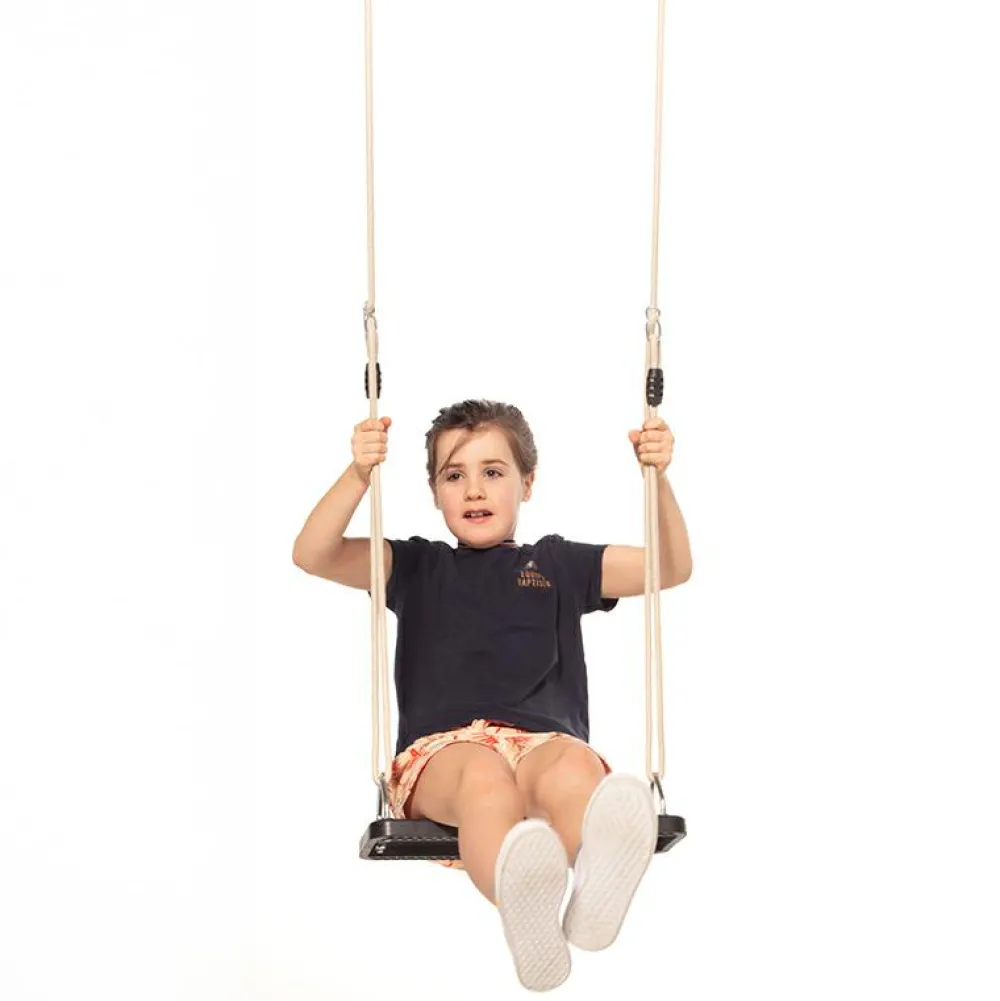 Et gyngesæde i gummi giver en sikker og behagelig gyngetur for børn i alle aldre. Den indvendige metalforstærkning gør sædet ekstra robust, mens det sædets gummimateriale er rart at sidde på. De flettede gyngetov er både slidstærke og bløde at holde ved, så små hænder får et godt greb. Gyngen er vejrbestandig og kan justeres i højden, så den passer til forskellige gyngestativer.