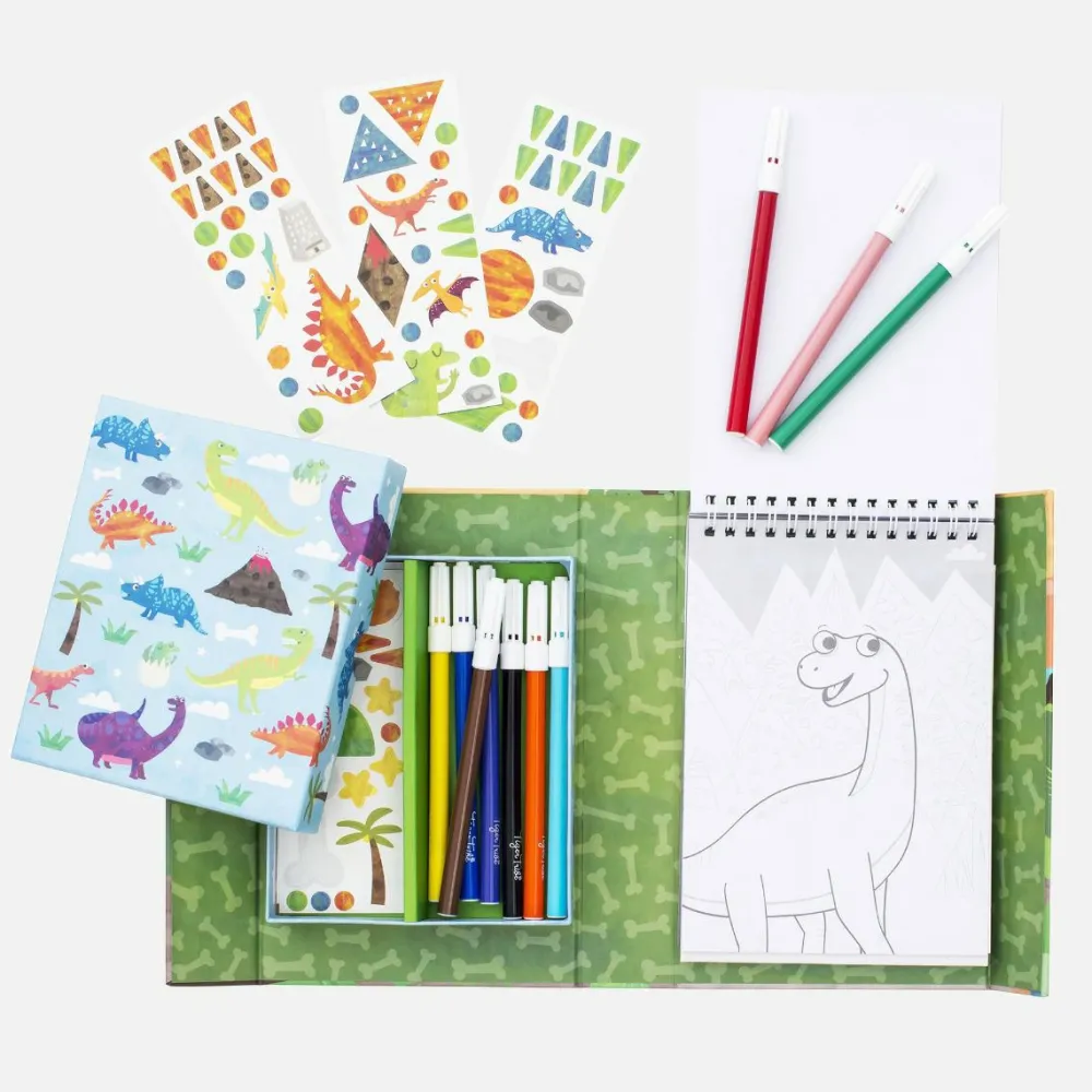 Dejligt sæt, hvor både illustrationer og tegneredskaber er samlet i en æske. Dit barn kan få tiden til at gå med at tegne og farvelægge hvor som helst og når som helst. Dekorér med klistermærkerne til sidst.