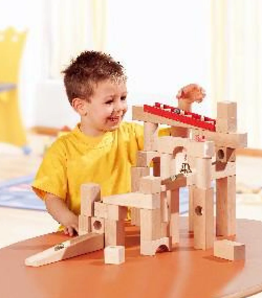 Kuglebanen er sjov for børn i mange aldre, de mindre eksperimenterer med klodserne og tyngdekraften af kuglerne, men når de bliver lidt større, sker det at banen inddrages i anden leg, eller der bliver indbygget andre effekter i banen.
