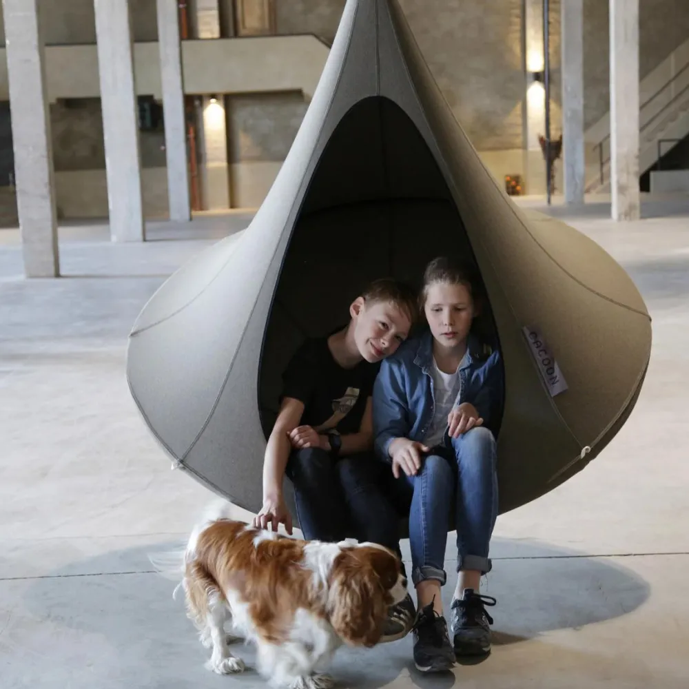 Det kan tåle vejr og vind bedre end fx bomuld og polyester, så denne hængehule kan bruges i let regnvejr.