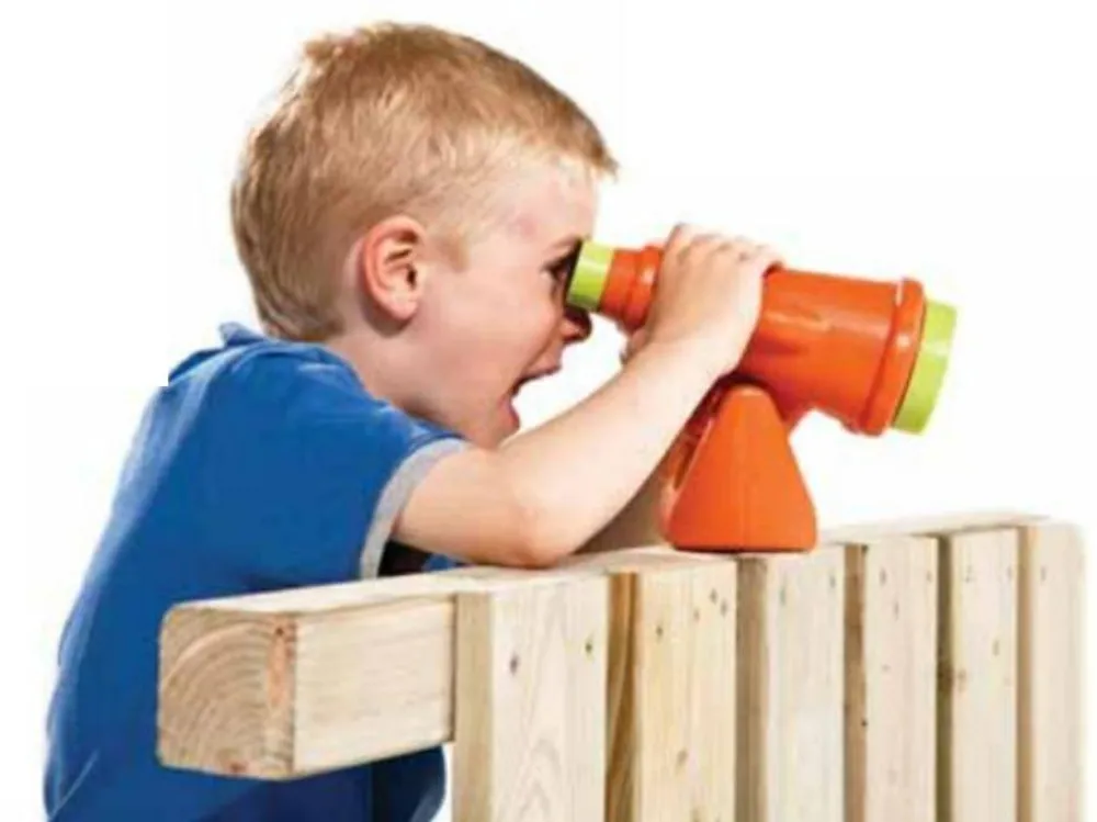 Sjov kikkert til at gøre legen i legehuset eller træhytten endnu mere eventyrlig. Der medfølger skruer til at sætte den fast med.