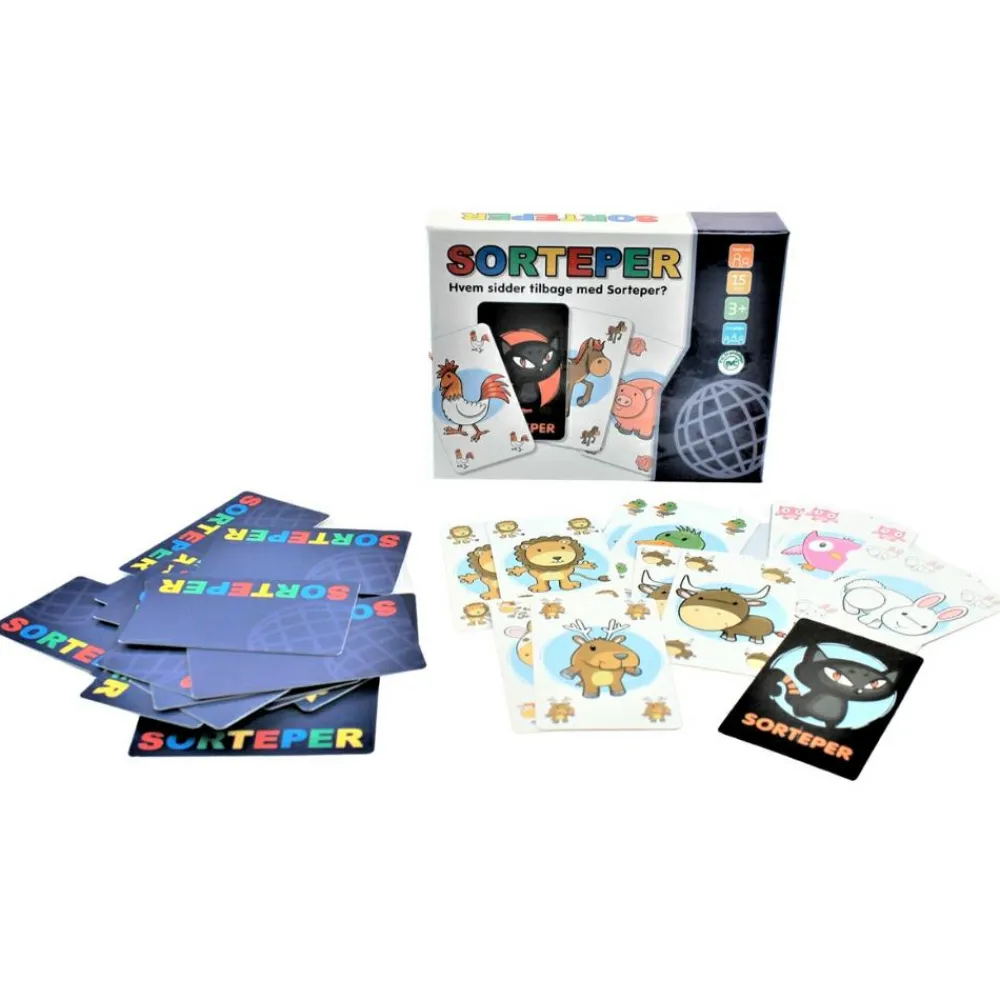 - Spillet fortsætter indtil alle par/stik er fundet og der er én, der sidder tilbage med Sorteper, som ikke kan danne par med noget kort. Denne spiller har tabt.