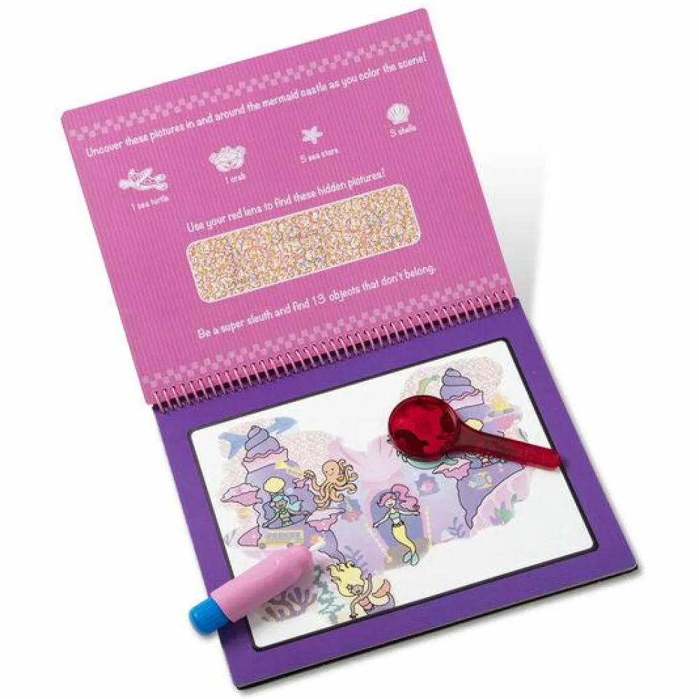 Lad dit barn tegne sig til flotte motiver, hvor der også er mange skjulte ting at finde ved hjælp af den medfølgende lup.