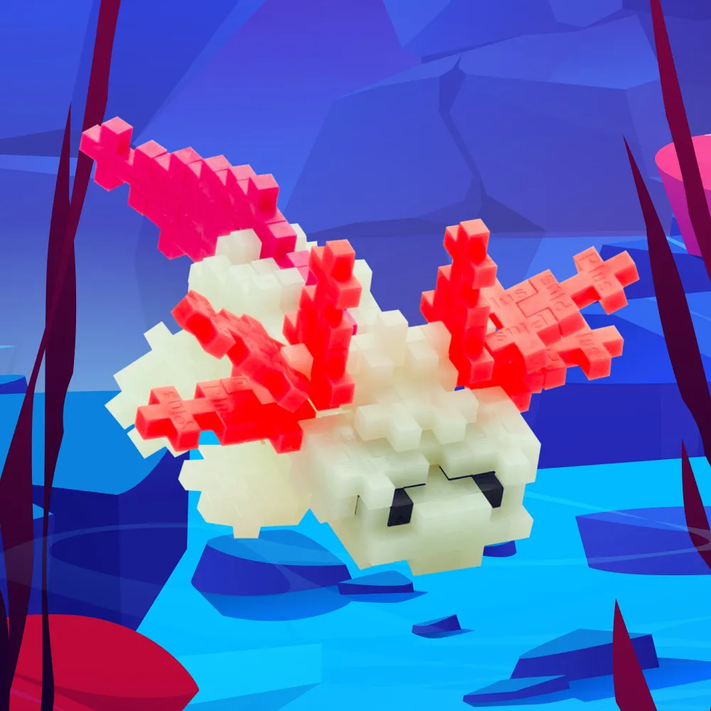 Byg den særlige Plus-Plus-Axolotl, som kan lyse i mørke.