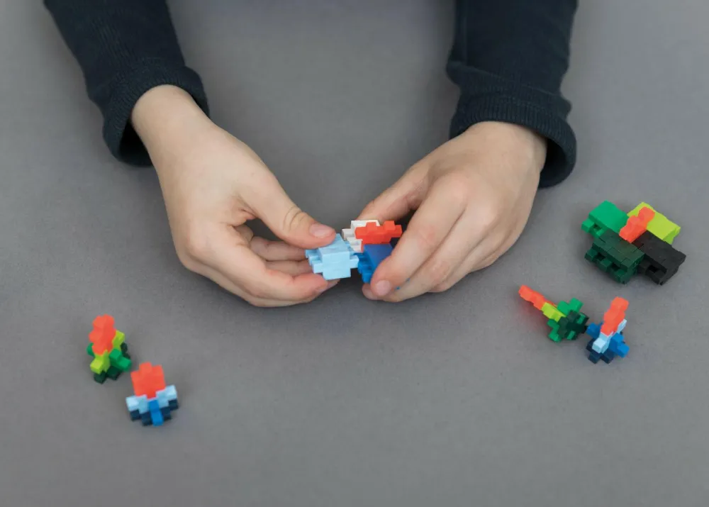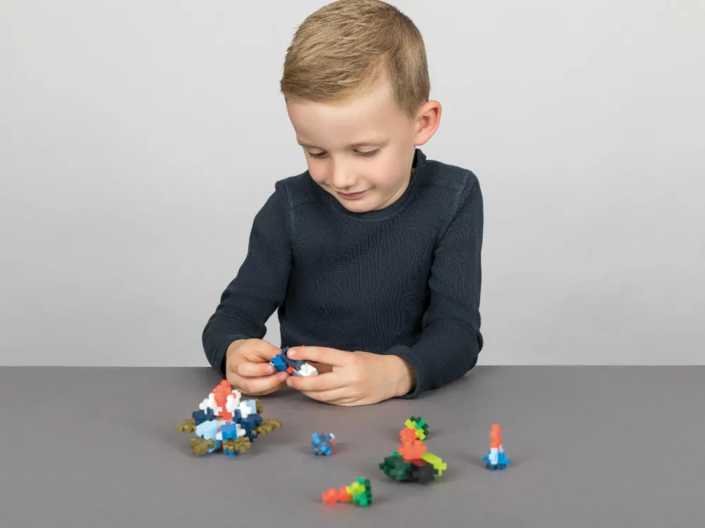 Formen som små plus-tegn kan sættes sammen på alle leder og kanter – og de fås i små (2 x 1,2 x 0,4 cm) og store (5 x 3 x 1 cm) og i mange farver. Skønt konstruktionslegetøj, som begejstrer de fleste børn. Leg med Plus-Plus styrker ungernes sans for geometri og logik. På fx YouTube kan du finde frem et massevis af byggevejledninger og forslag til at konstruere med Plus-Plus.