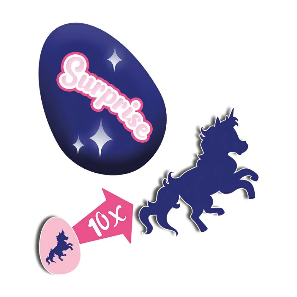 Anbring ægget i vand og følg ægget vokse sig større og til sidst udklække og blive til en smuk enhjørning.