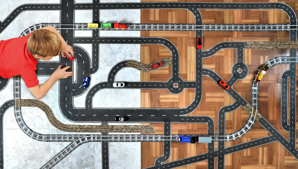 Alle former for legetøjsbiler kan bruges på Playtape, og dit barn får som ekstra bonus også udfordret sin kreativitet og fantasi, når banen skal formes og gennemtænkes.