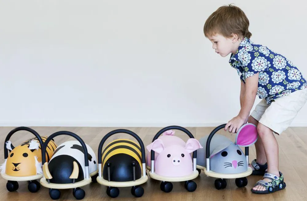 Det unikke ved en Wheely Bug fremfor lignende legetøj er, at den kan både rulle fremad, bagud, til siden og rundt om sig selv. Derudover har den et lavt tyngdepunkt, så det er svært for dit barn at vælte på den, i modsætning til andre køretøjer.