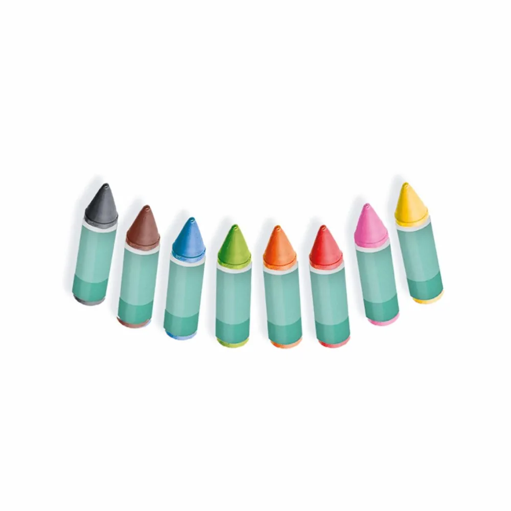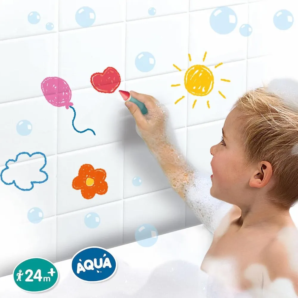 Disse farvekridt kan man male med i badet. Alle hårde flader såsom fliser og emalje kan tåle at blive til små kunstværker, mens dit barn fornøjer sig med at blive ren.