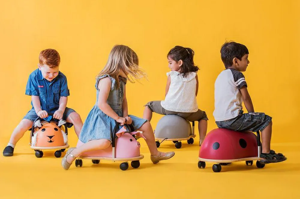 Det unikke ved en Wheely Bug fremfor lignende legetøj er, at den kan både rulle fremad, bagud, til siden og rundt om sig selv. Derudover har den et lavt tyngdepunkt, så det er svært for dit barn at vælte på den, i modsætning til andre køretøjer.